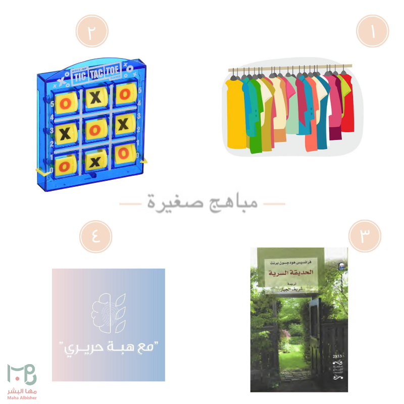 ماذا عنكم يا أصدقاء؟ هل اكتشفتوا مباهج صغيرة هذا الشهر؟هل طبختم وصفة شهية؟أم زرتم مكانًا خلابًا؟أم جربتم هواية ؟أم تبنيتم طقسًا حديثًا؟شاركوني في التعليقات فأنا اتطلع لسماع توصياتكم وكل شهر أجرب أشياء جديدة من مفضلاتكم.