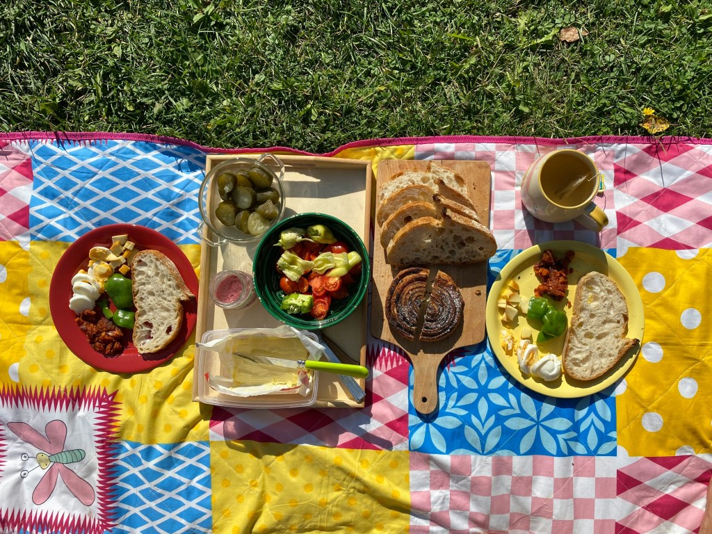 دُعيت على عزيمة إفطار وقد وعدتنا ابنة خالتي بتقديم القهوة والوافلز الطازج لنا وللأطفال. ففكرت بأننا سنجوع بعد ذلك فا اقترحت عليها بأنني سأحضر وجبة مصاحبة مالحة. فصنعت حمسة الباذنجان واشتريت خبز ساوردو الطازج، وبعد الوافلز صنعنا شطائر لذيذة من حمسة الباذنجان، فمسحنا الشطائر باللبنة أولًا ثم الحمسة ووضعنا الشطائر في الحماصة وقدمناها مع شاي وكانت وجبة لذيذة.